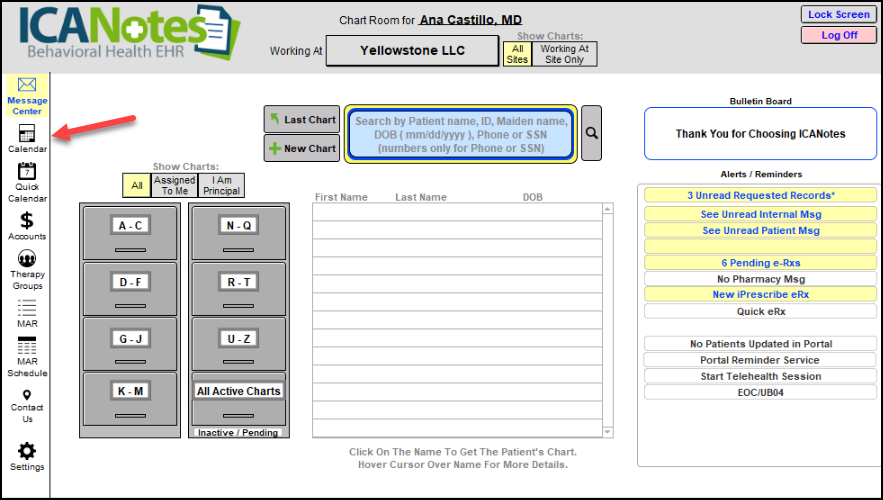 When you first log into ICANotes, go to the Calendar from the Calendar button.