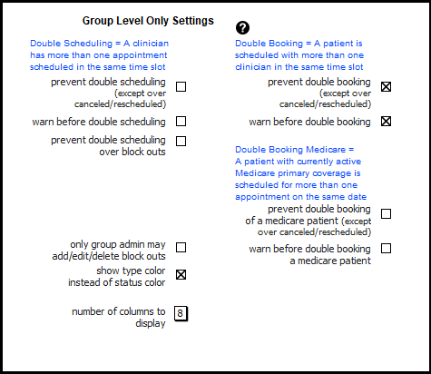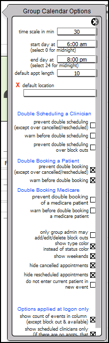 Group Calendar Options can be set here. These are similar to the settings available in Settings + Directories.
