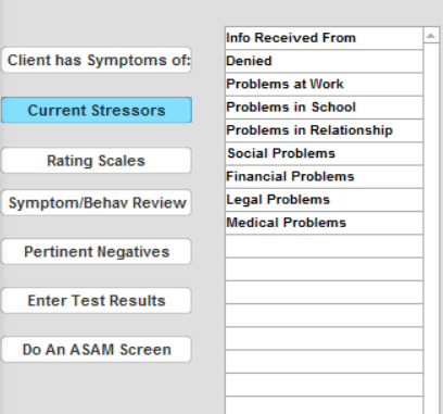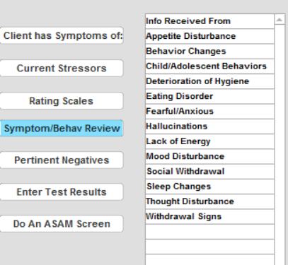 Click Client has Symptoms of to see the full listing of Symptoms.