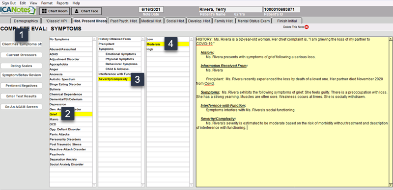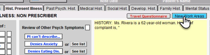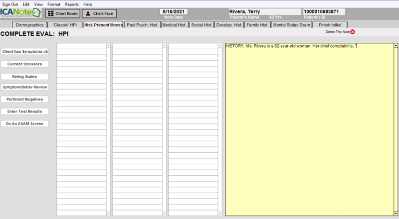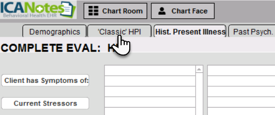 When finished with the client's History of Present Illness, move on to the next tab(s) to complete the note.