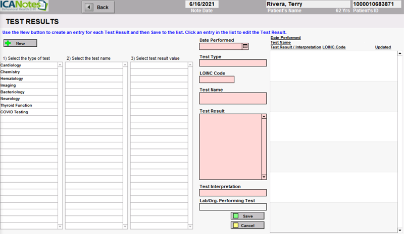 - Can I create a test note just to play around and see the new changes? Sure! If you have a test or sample chart setup on your account (such as "John Doe", "Mickey Mouse", or another similar name) go ahead and create a new Complete Assessment and click around to look at the new design. Since it's a test/sample chart, no actual client data will be disrupted.