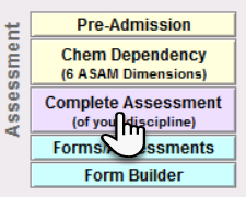 From the client's Chart Face, click to select Complete Assessment (of your discipline) to start a new note.