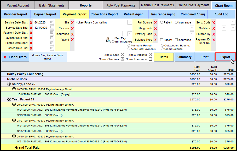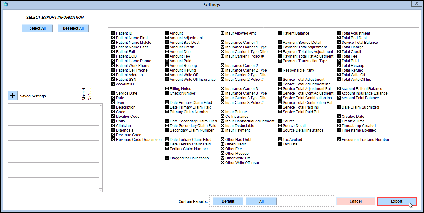 If you want to create custom reports for patient account reporting, you can do this through exporting.