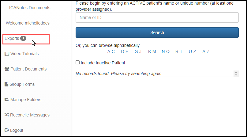 7. Go to the Uploads Site and click on the Exports link on the left.