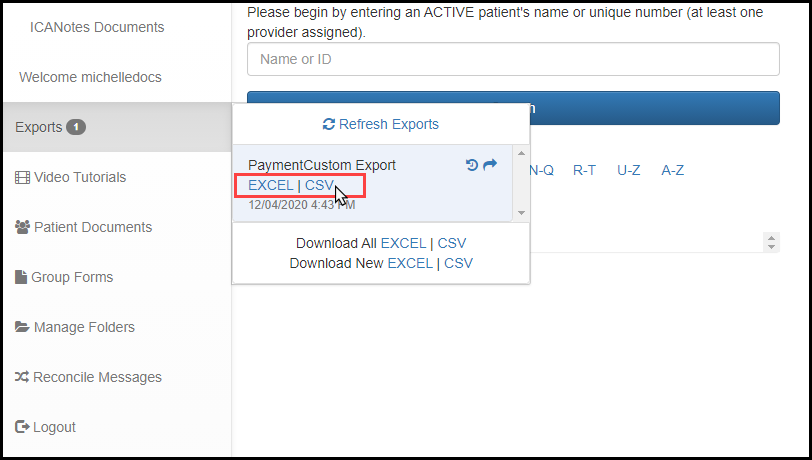 8. Find the report and choose whether you want to download as Excel or CSV.