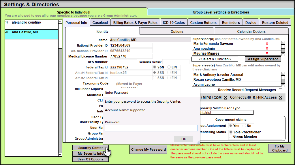 2. Click on the Security Center button and enter your password. Then click the OK button.