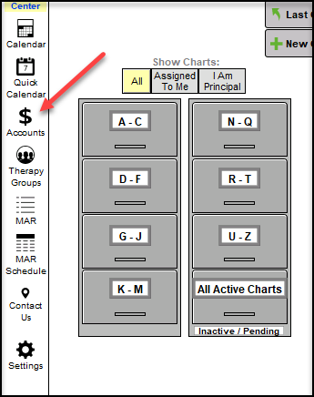 5. Any user can go into Patient Accounts by clicking the "$ Accounts" button in the Chart Room.