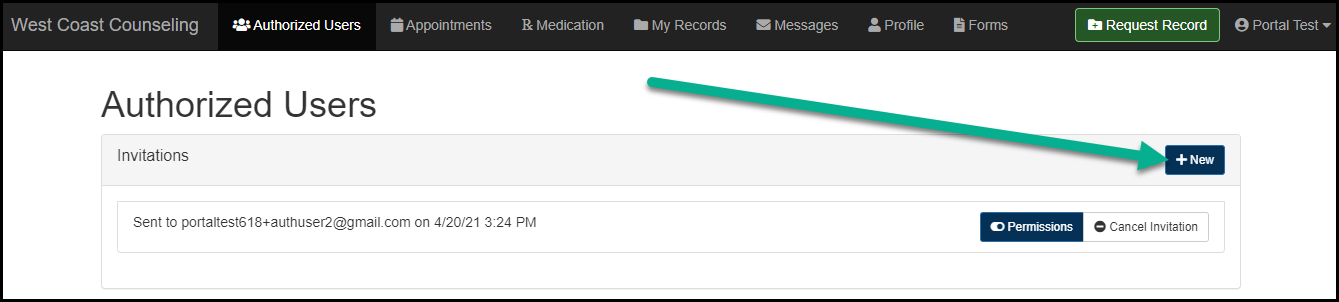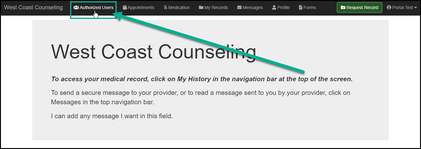 6. After the authorized user has been set up, the patient (or Portal Owner) will maintain the ability to click the