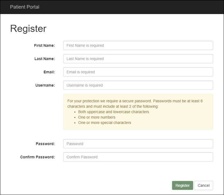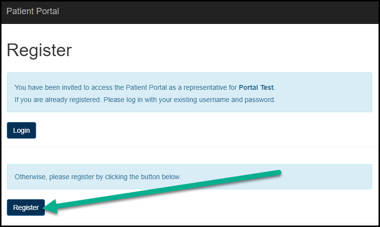 5. By clicking the link, they will be brought to the Patient Portal Registration page. They will need to click the