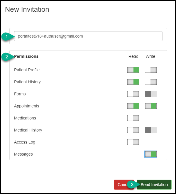Authorized user permissions are set up by the patient or portal owner via the Patient Portal.