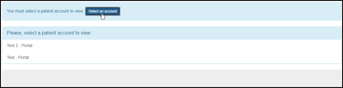 2. The portal owner can click the Select an account button near the top of the Patient Portal page to change accounts.