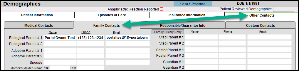2. In Demographics, ensure that there is a valid email address in the Email field and that the patient is portal activated.