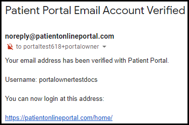 7. Once the portal owner has registered, they will receive an email similar this to confirm their email address.