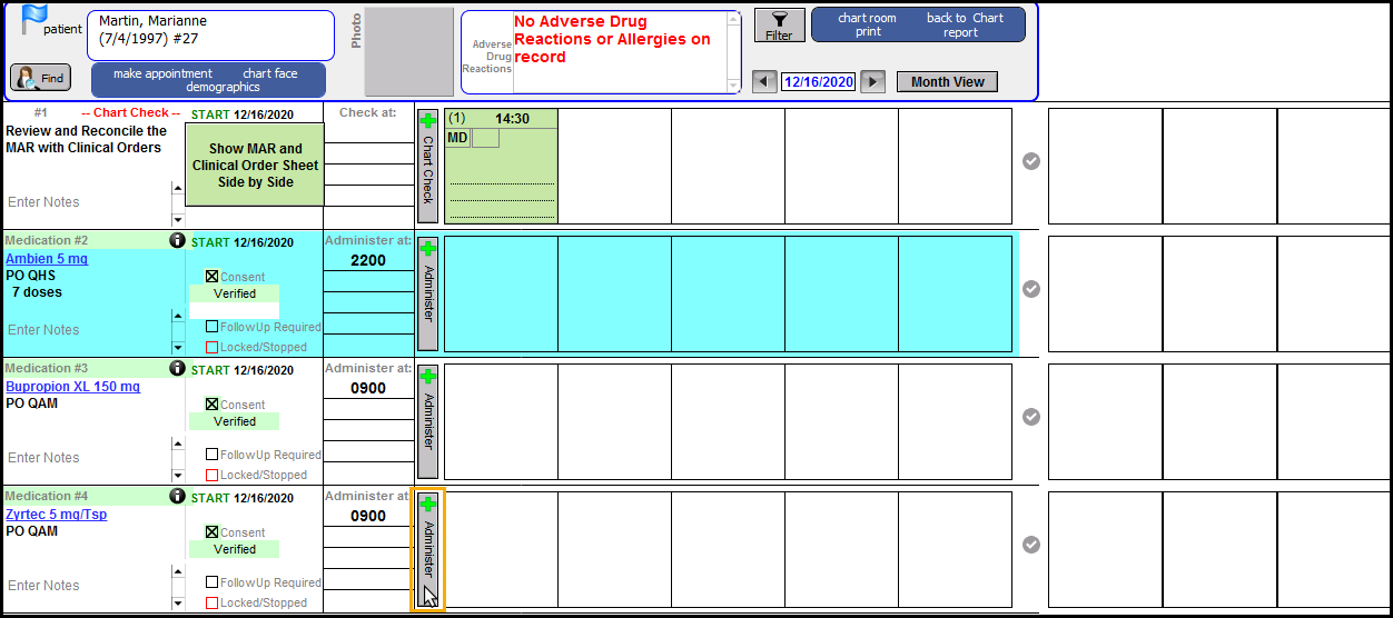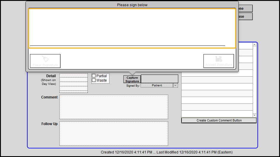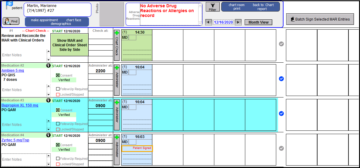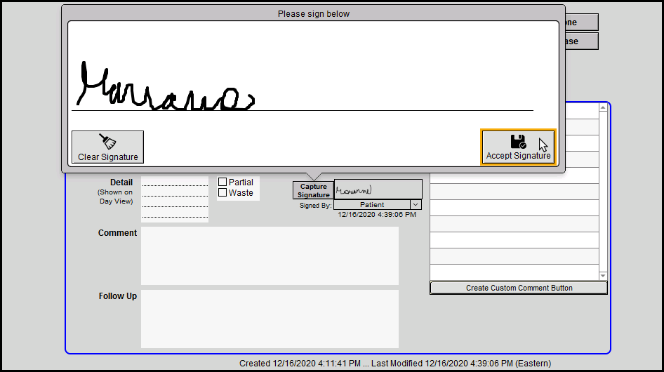 The MAR offers Signature Capture with the pointing device on your computer. This can be done for a single medication, or as a batch.