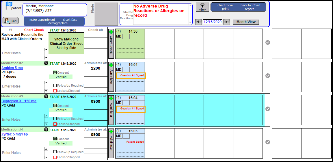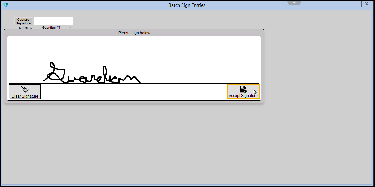 You will see the red text 'Guardian #1 Signed' (this will vary based on the option selected when you indicate who is singing) on the MAR entry.