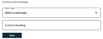 Customize the heading for each of your enabled note types by first making a selection in the Note Type dropdown, then typing the new heading in the Custom Heading field.