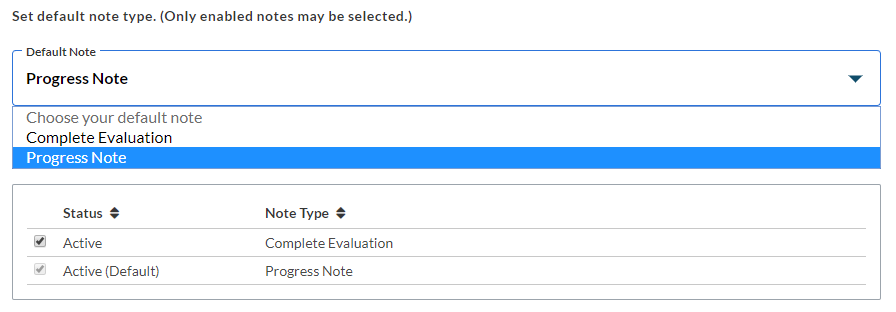 To set your default note type, click into the Default Note dropdown and make a selection.