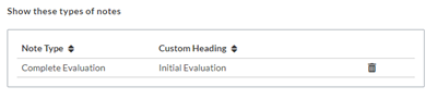 In the section below, your custom note headings will be listed. To remove a custom heading and return the note to its default title, click the trash can icon to the right of the Custom Heading.