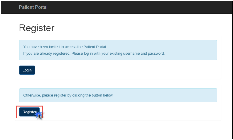 2. Click the blue link, and it will bring you to a page that gives you two options: Login, or Register. You will want to select Register.