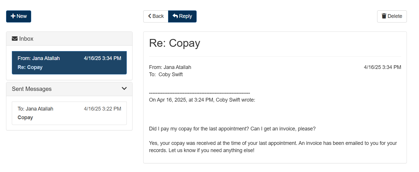 5. Your sent message will show under ‘Sent Messages’ if you wish to review it