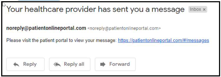 6. When your provider replies, you will receive an email alert to check the portal for the secure message:
