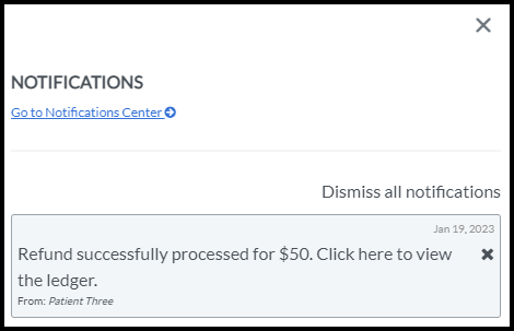 A notification will appear in the application when the refund has posted to the client's Account Ledger.