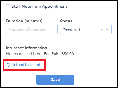 The refund from appointment feature can be used by both customers processing payments with the ICANotes+ credit card processing feature and by customers who simply record a payment without processing the charge using our payment processing feature.