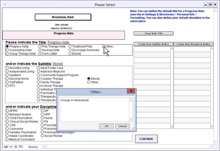 button. Choose Other under "Please indicate the Title:" field. Type in the popup Other... box what you would like to name the note.