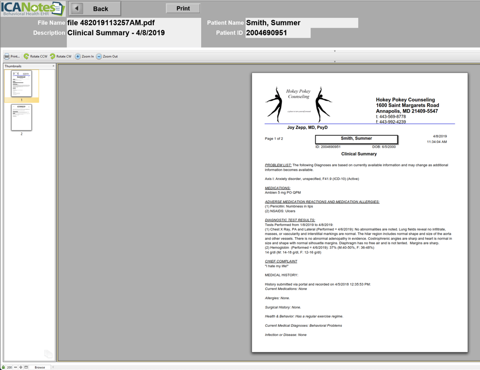 The Clinical Summary will print in two pages.