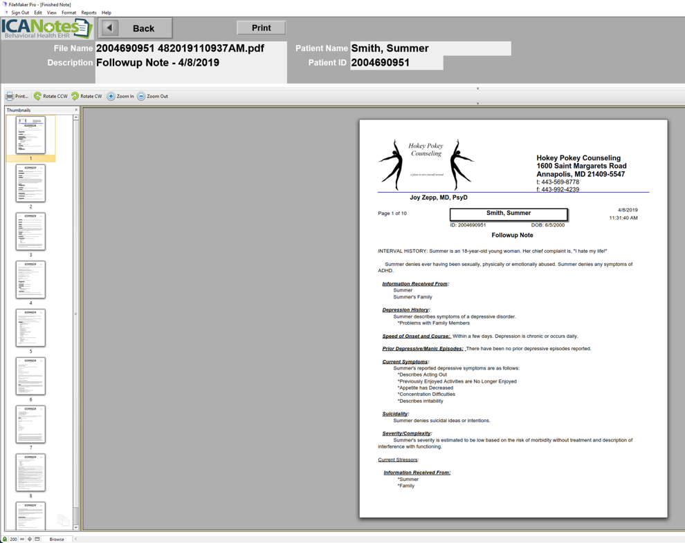 This progress note will take ten pages to print out.