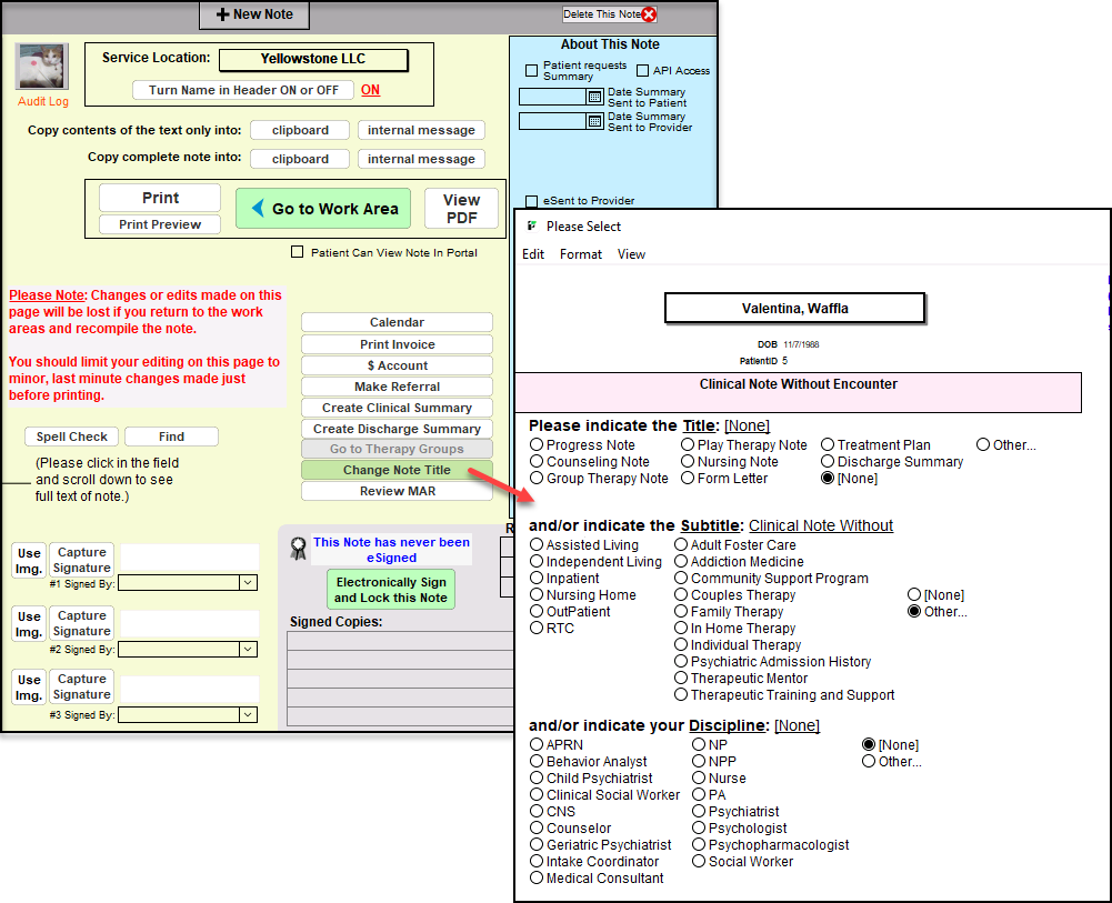 When a Quick Note is compiled, its default note title will be Quick Note. Users can change the default note title for the Quick Note - as well as several other note types - in the Options tab of Individual Settings and Directories.