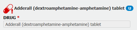 You can distinguish free text medications from recognized medications by the red pill alert to the left of the drug name in the prescribing widget: