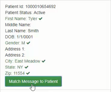 5. After looking at all of the potential matches, this patient appears to have the most matching criteria of the Selected Message. Click the button.