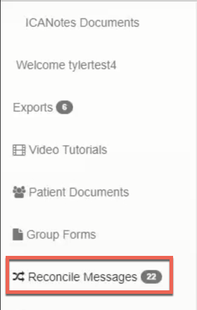 2. On the Upload site, (A) click on Reconcile Messages and you will see a list of unmatched patients.