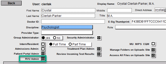 Once enabled the user should log off, then log back in to ICANotes. A user enabled as an RVU Admin will now see new fields added to ICANotes for the purposes of generating the RVU Report.