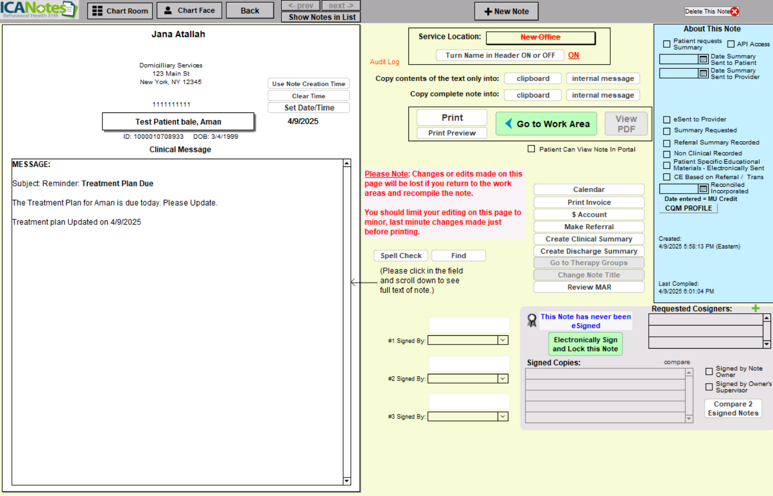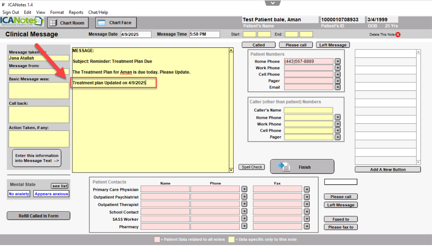 6. The Clinical Message will go to the Finished Note.