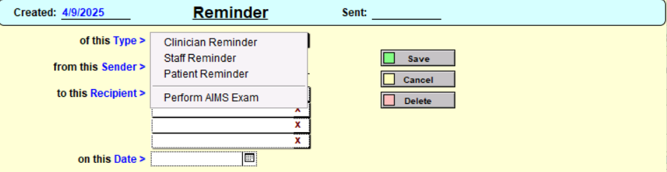 - Choose the type of reminder from the dropdown menu.