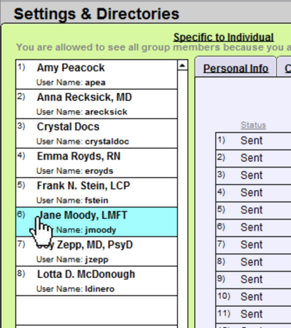 As a Group Administrator, you may choose yourself or others in your group by selecting their name in the left column (if you are not a Group Administrator, you will only be able to see yourself on the left.