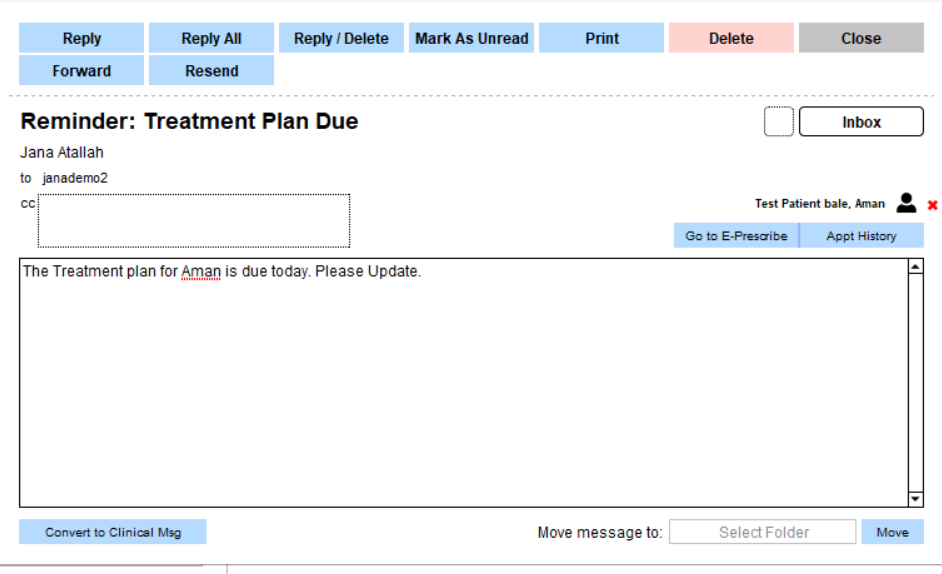 4. (Optional) From here, the recipient is going to make a clinical message to document the Reminder was completed.