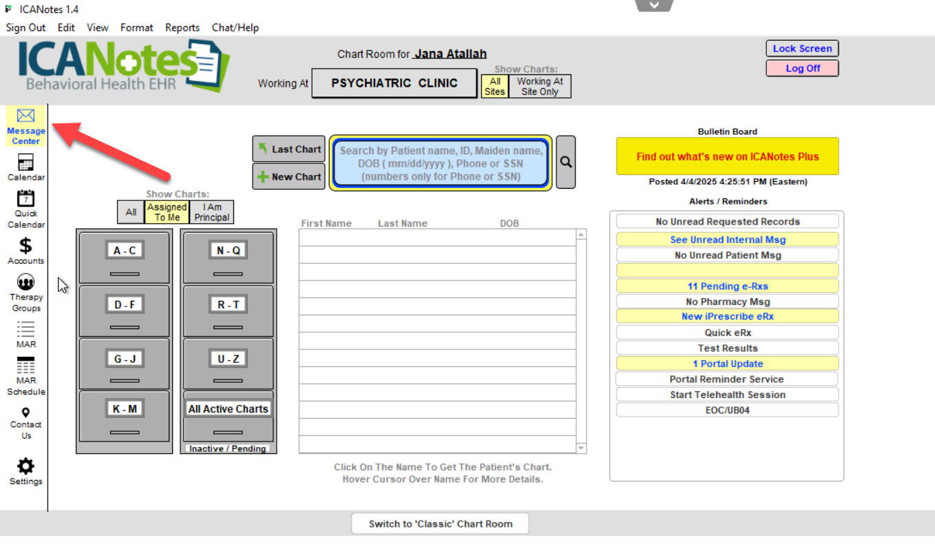 1. From the Chart Room, click on the Messaging Center.