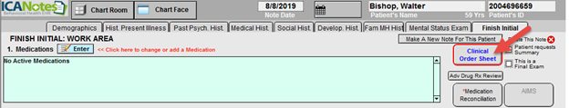 From the Complete Assessment, navigate to the Finish Initial tab and click to go to the Clinical Order Sheet