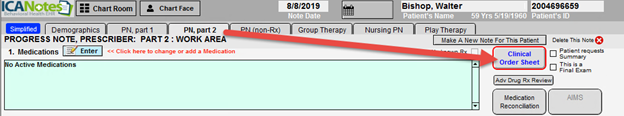 From the Prescriber Progress Note, the Clinical Order Sheet can be found in PN Part 2