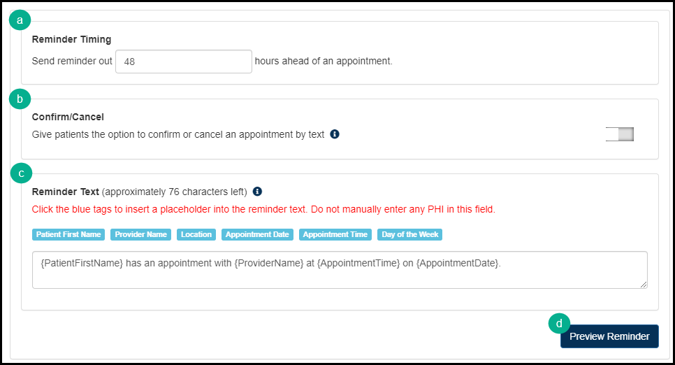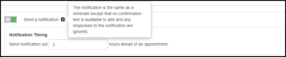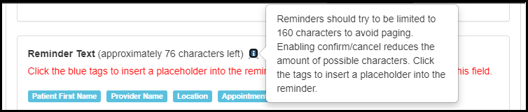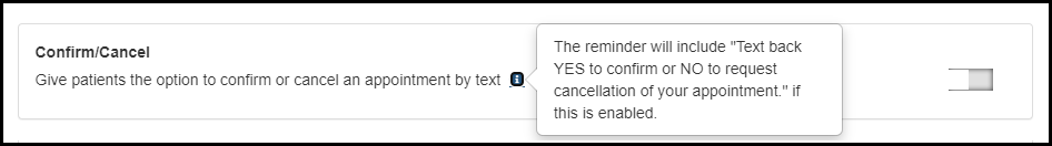 b. You can allow the patient to confirm or cancel their appointment by responding to the reminder. The 'i' icon has additional information on this function.