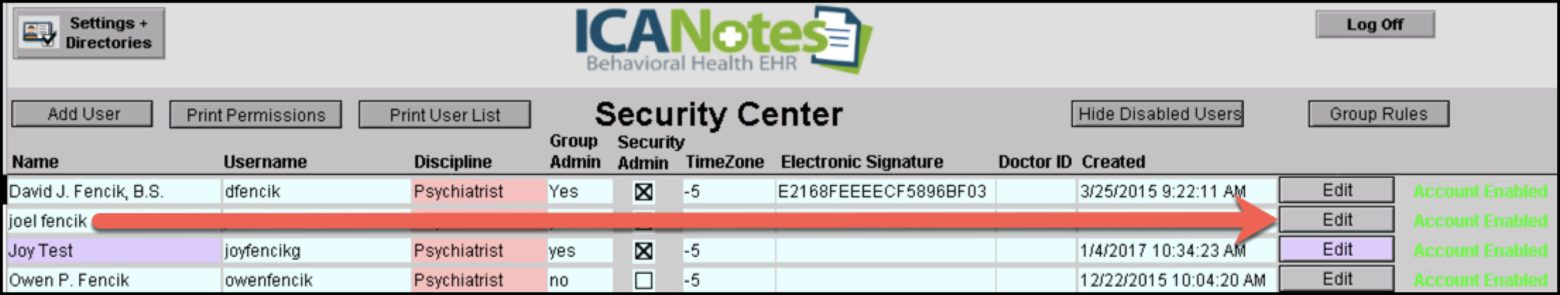 Navigate to the Security Center and enable a user for Kno2 by clicking Admissions Admin.