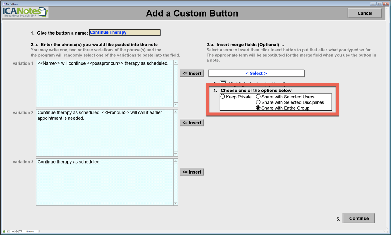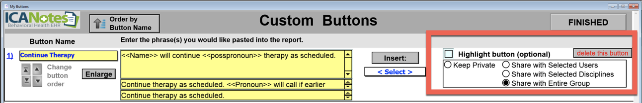 Sections How To Create Custom Buttons Where To Find All Custom Buttons Learn how to create your own custom buttons in ICANotes which will help improve your documentation and efficiency. How To Create Custom Buttons 1. All over ICANotes Custom Buttons ...