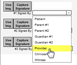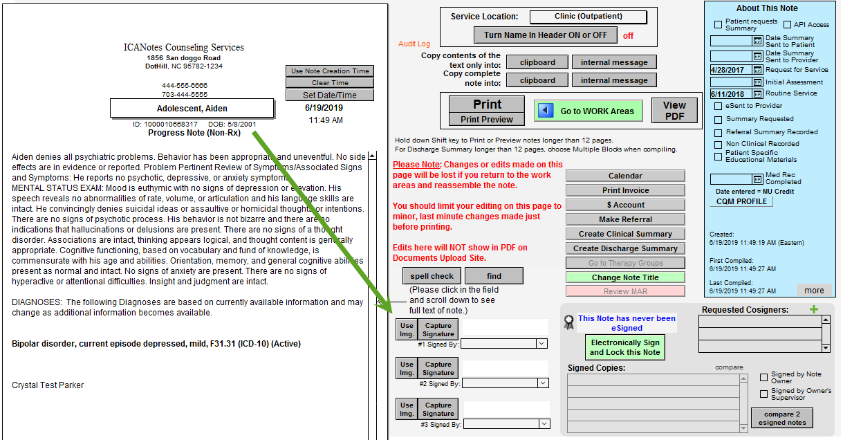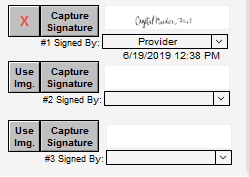 Once the signature image file has been uploaded and the group rule enabled, you will see additional buttons in the compiled note screen