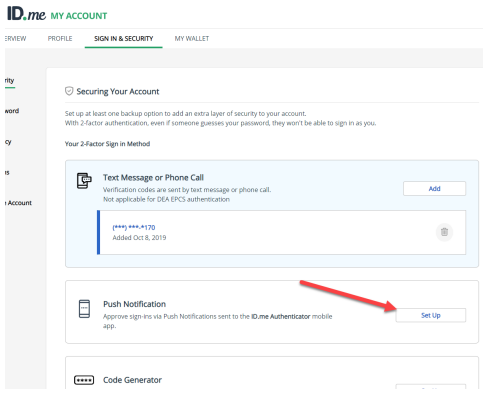 - Your new phone should now appear under Push Notification in your ID.me account.