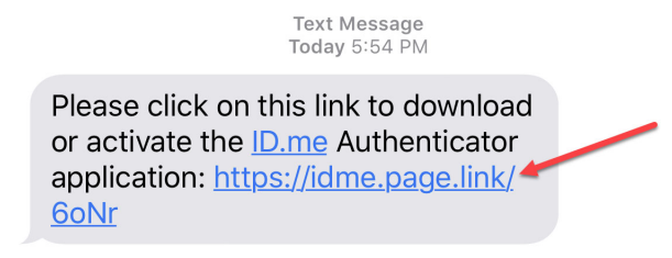 - You will receive a text message with a link to download the ID.me Authenticator app.