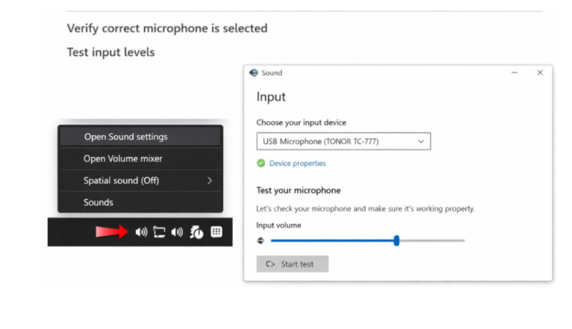 Verify the correct microphone is selected.