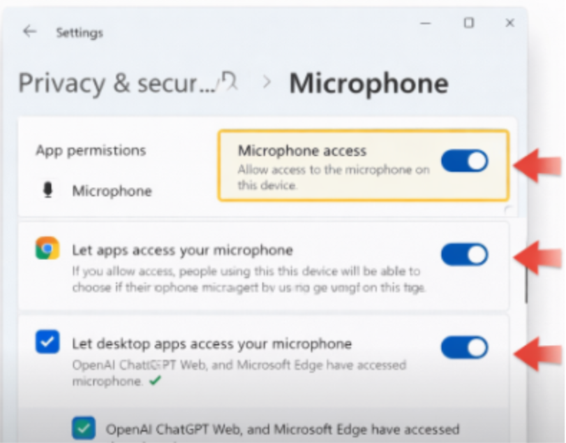 Confirm Microphone is set to Allow.